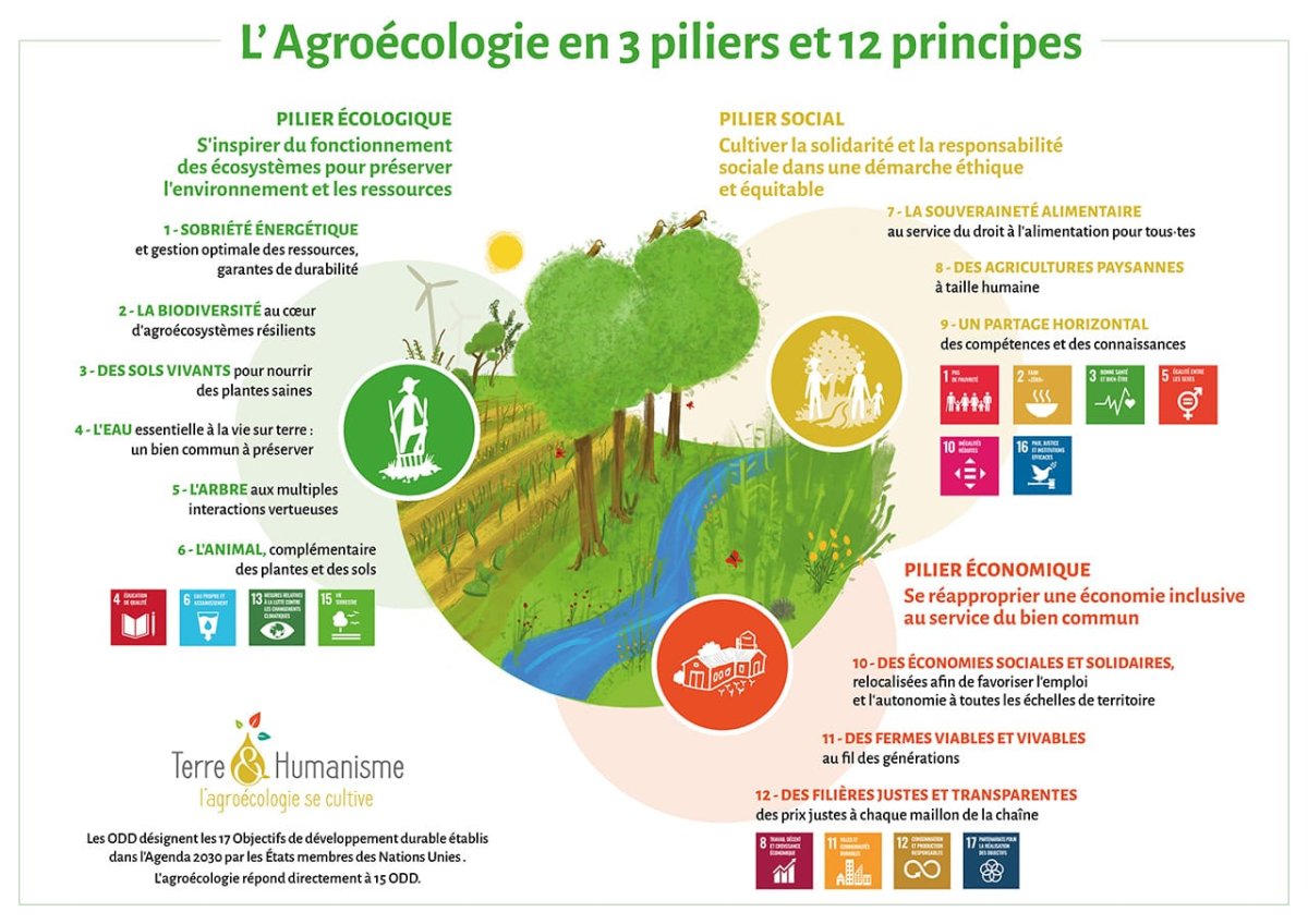 L'agroécologie regroupe toutes les techniques écologiques de culture des jardins, des champs... Elle va utiliser les fonctionnalités offertes par les écosystèmes en essayant de les impacter le moins possibles. Pour cela, elle promeut la biodiversité, qu'elle encourage et développe et s'attache à la notion de terroir en tant qu'entité vivante (culturelle, écologique...). Elle s'attache aussi à permettre que les techniques utilisées, sans nuire à l'environnement permettent aux paysans de vivre dignement et correctement de leur travail. En savoir plus